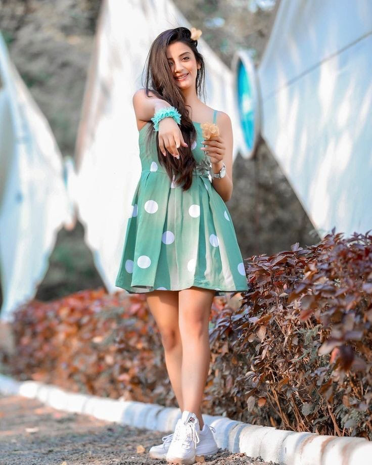 Green Polka Dot Short Dress for Women | Western Casual Summer Outfit